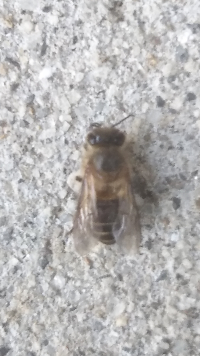親戚の家に蜂が出没中との話です。こういった害獣を駆除する業務は行っておりませんが現場に出動いたしました。蜂といっても色々と種類がありますので何か確認、結構ブンブン飛び回っております。殺虫剤を散布後、動きが鈍くなった蜂を確認してみるとミツバチのようです(写真)日本ミツバチか西洋ミツバチかは詳しくは解らないのですがそれらの類いです。巣の場所を確認しに行くとどうも床下の通気口に巣がある様子、結構動き回っておりましたので相当いると予想その辺付近に殺虫剤を散布、大量に蜂が出てきました。これを繰り返すこと数回、だいぶ蜂が少なくなってきましたが絶滅までいったのか…