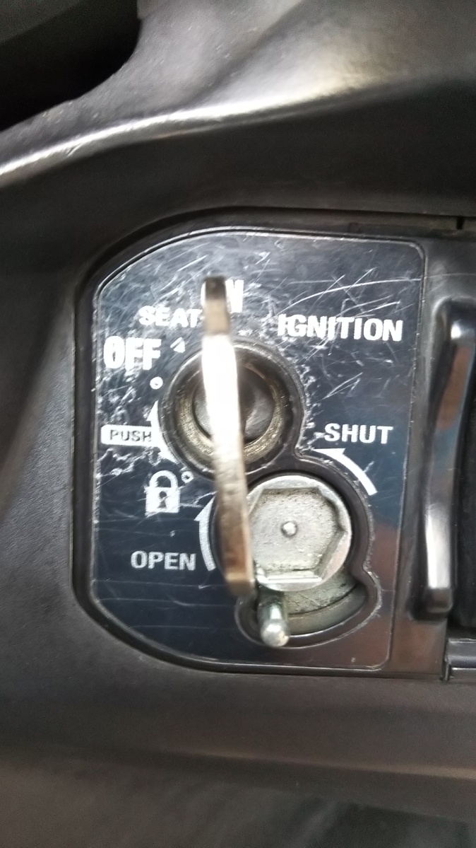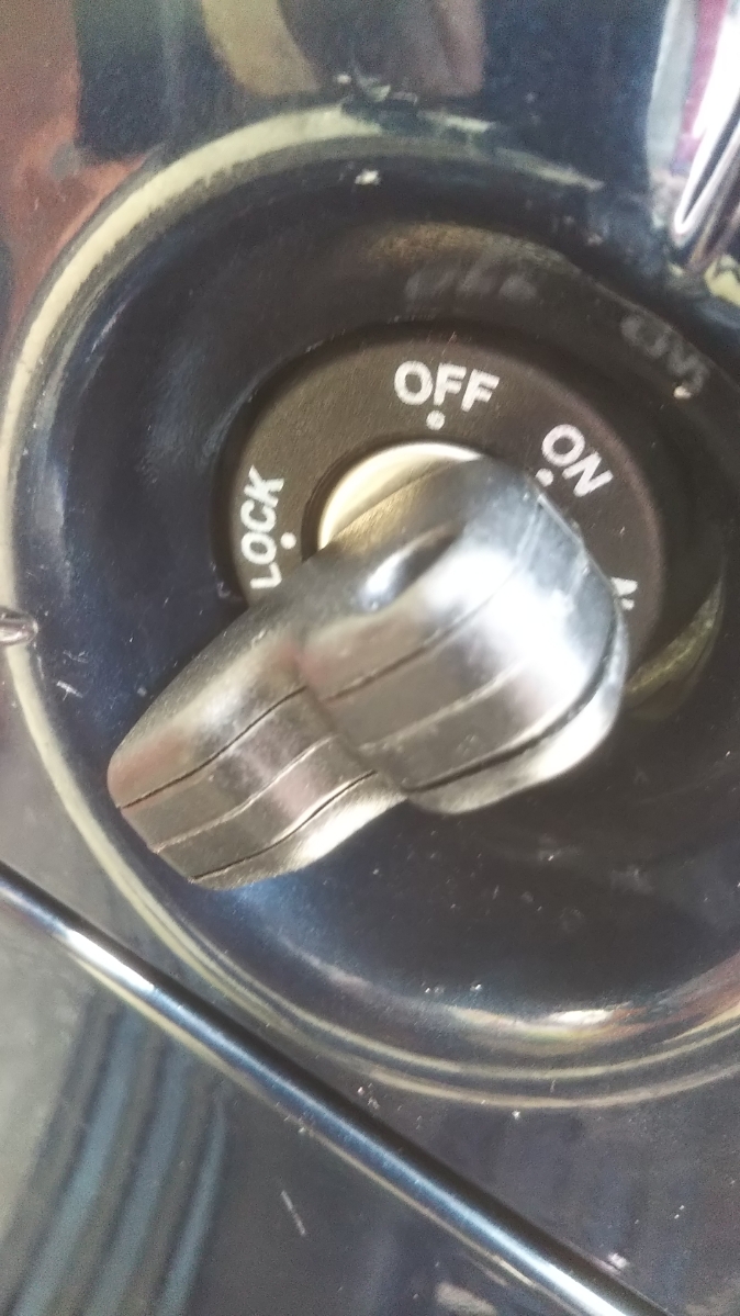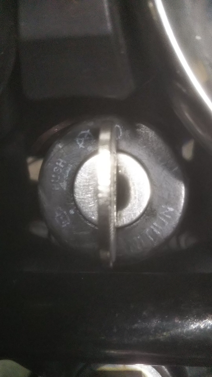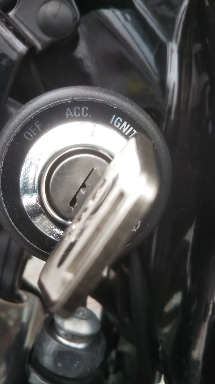 鍵を紛失したとの電話です。現場で確認してみると前に製作したことがある逆輸入バイクと同じようなシリンダーが付いています。データーを取ってみるとやはり同じデーターです。ただ4つシリンダーがついていましたが中を除いてみるとどう見ても4つともシリンダーのタンブラー構造が違います(新車の場合1つの鍵で全て操作できるようになっております)試しにハンドルロックからキー作製しましたが他の3つのシリンダーは回りません。今度はメインの鍵を作製しましたが回りにくかったですがガソリンタンクは回りましたが他のメットホルダーとハンドルロックが回りません。どうやら何回か部分的にシリンダー交換している様子です。お客さんは(メインとガソリンタンクが回ればいい)とのことで製作完了です。イグニッションONです(写真)