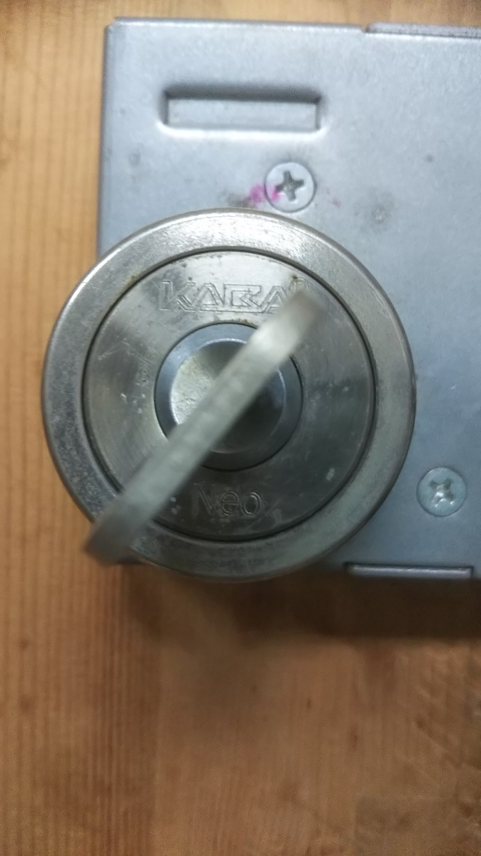 鍵を紛失したとの電話です。(移動中にどっかに置き忘れた可能性がある)とのことです。(色々と調べてもらっているけど連絡が来ないしすぐに家に入りたい)とのことです。現場で色々と伺うと当方の前に3件来てもらったがどこの業者も(壊さないと開けられない)と言われたそうでお客さんが(壊したくはない)ので帰ってもらったとのことです。この建物さすが築浅なだけあって防犯性もかなりいいです。ただ当方の場合この物件に関して解錠方法が何点かありそうでしたので費用が掛からない方法を提案、了承を得たので解錠開始です。若干お時間を要しましたが解錠完了です