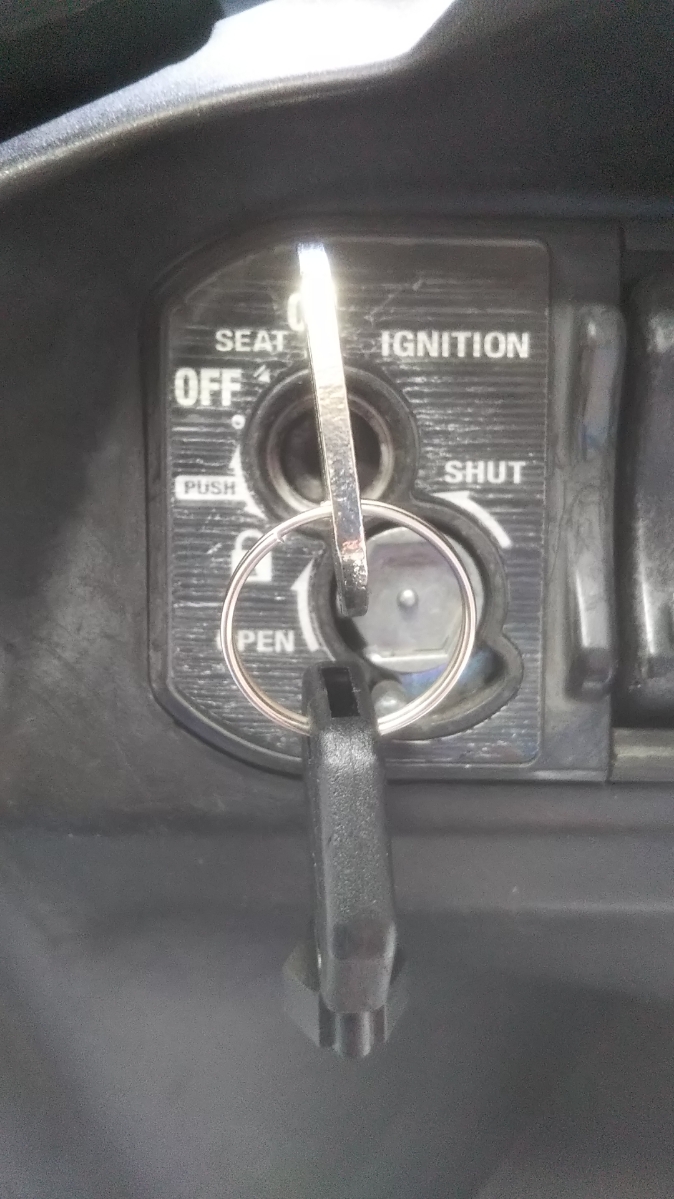 鍵が1本しかないのでイモビライザー付の鍵を追加してもらいとの電話です。この車種トラックの中では鍵の種類が色々とあるみたいなので何種類か持っていきました。現場に到着すると予想していた物の1つだったのですぐに登録は完成しましたがトラックのコンピューターとチップのIDの距離的問題で反応したりしなかったりとうまい具合に安定的に反応しません(エンジンが掛かったり掛からなかったり)色々と試して安定的に反応する場所が解明、その場所にチップを固定すると安定的に反応する(エンジンが掛かる)ようになりました。若干お時間をかけてしまいましたがイグニッションONです