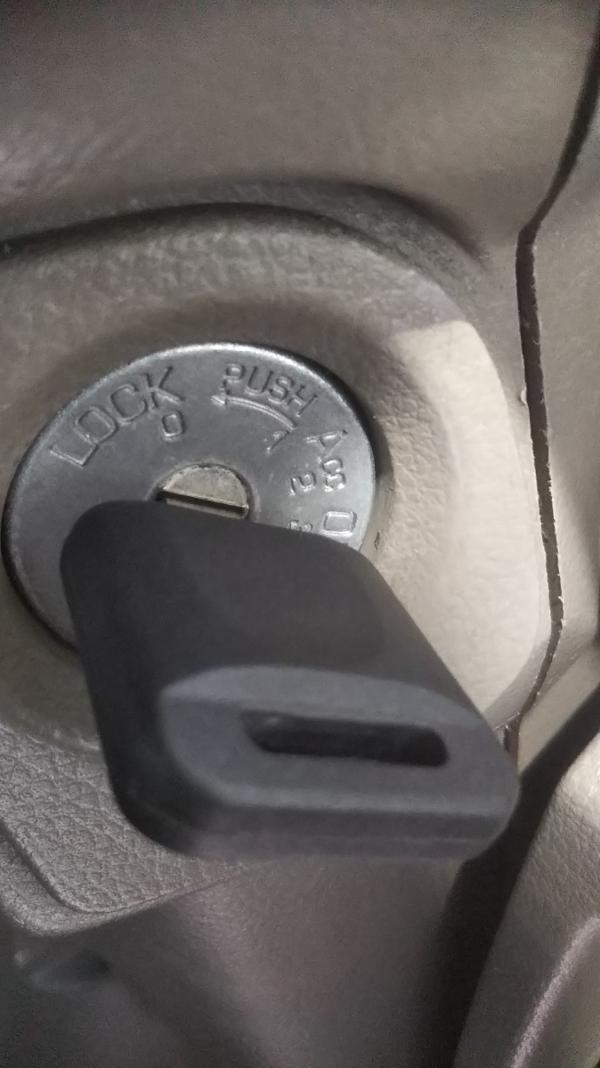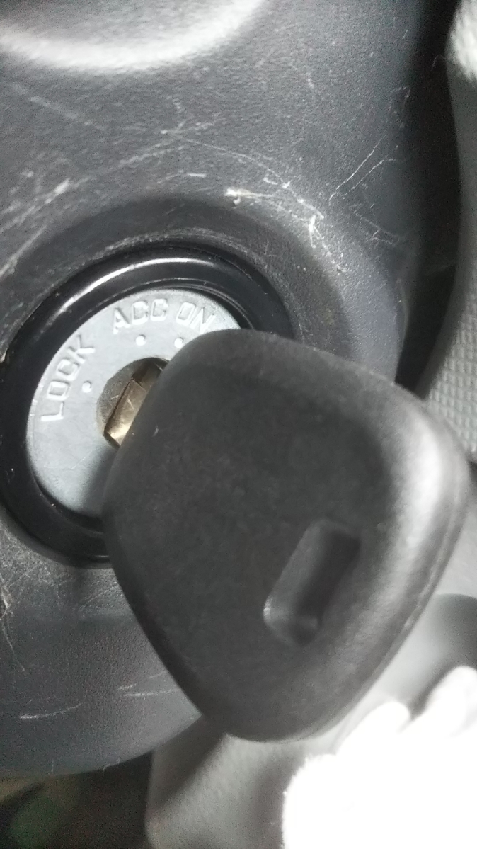 鍵が1本しかないので追加して欲しいとの電話です。現場で見てみると鍵が結構曲がっている状態です。ドアの開閉とイグニッションのONOFFを確認させて頂くとイグニッションのONOFFは問題ないのですがドアの開閉が結構クセが強いです(最初ドアシリンダーとイグニッションのキーが違うのかと思っていましたが・・・)持っておられる鍵はキーレスでリモコンが付いているのでリモコンでドアを開閉すれば使用上まったく問題は無いですが今回の依頼はイモビライザーキー作製なので鍵でドアの開閉もしなければなりません。そのまま鍵を作製するとやはりクセが強くなりますので若干厚みを持たせて作製しましたがやはりクセは残っております、開閉に動かし続けるとなんとなくコツがわかったような・・・普通に開閉ができるようになってきました。後イグニッションはスムーズにONOFFできていますのでSTARTです