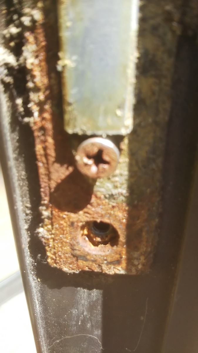鍵を交換したいとの電話です。100件に1件位交換時に異常に固いネジに出くわします。サビが原因で取り外せない時やネジの変型とかもありますがそれに対応するため様々な工具を要して取り外しますが最終手段まで到達しなければならない場合もあります。この最終手段(破壊)は時間を要しますのでほとんど使用しませんがここまで手を加えなければ外せない程固い場合もあります。今回そんな現場でした(写真)あまり巡り合いたくはない現場ですが色々と学ぶことが多い現場でもあります(どんどん対応工具が増えていきます)かなり時間を要しましたが取り外し交換完了です