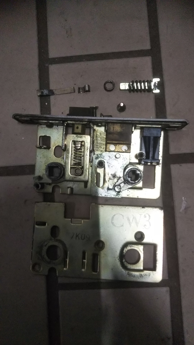 鍵を修理及び交換したいとの電話です。(取付けれますか?)とのことだったので何社か断れたんでしょうねぇ?現場で確認してみると錠前の部品が欠損しております(写真)精密部品が数点無い状態なのでここからの修理は不可です、しかもかなり珍しいメーカーで確認をとってみると、この錠前は廃版になって数が出ていないのか互換している製品もありません。ということで別の錠前を加工して取付けるようにしました。今回は近しい錠前がないのでかなり加工が必要な現場です。通常引戸の取付の加工はドアの部分がほとんどですが今回は錠前の加工が相当必要な現場です(それに加えてドアの加工も必要ですが)かなりの時間がかかりましたが無事取付完了です