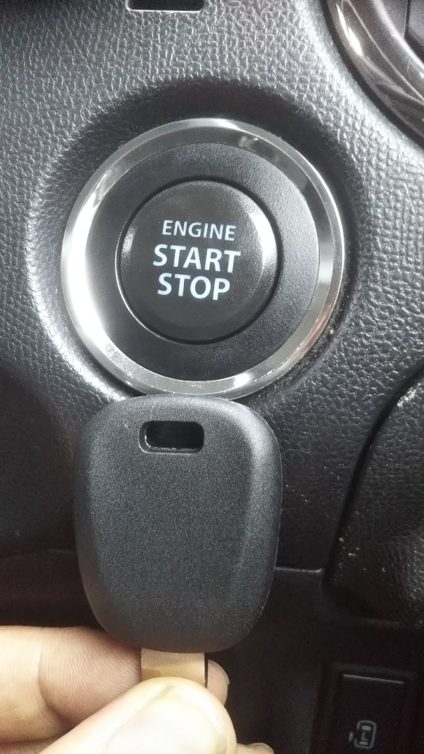 (鍵を追加したい)との電話です。(低価格で追加する方法はないですか?)との相談です。色々と車を確認後、このタイプだとイモビライザーキーも追加することは可能のようです。プッシュスターターなので元々スマートキーで操作しますが中には鍵式に出来るタイプがあります。リモコン機能はないですが、鍵でドアを開け閉め出来ますしキーをプッシュボタンに近づけてプッシュボタンを押すと普通にエンジンが掛かるので予備として使用可能です(これでスマートキーを無くしても安心です)価格もスマートキーよりも低価格で追加できますので提案後、提案採用で追加登録です。今回もスムーズに登録完了でプッシュスターターONです(写真)