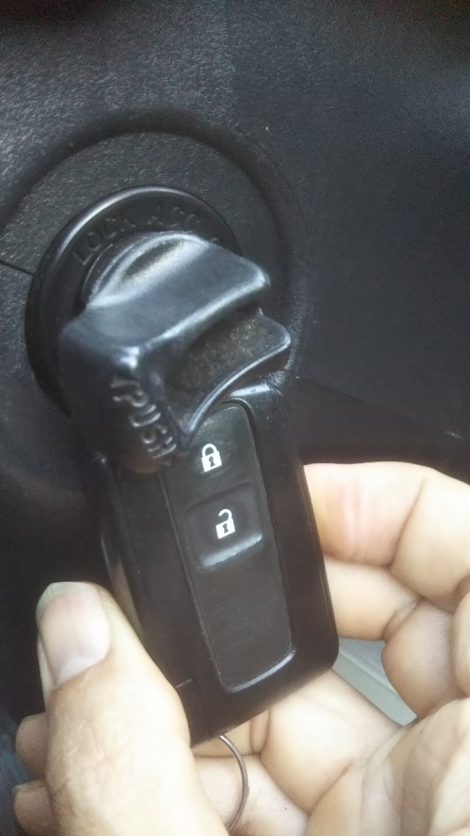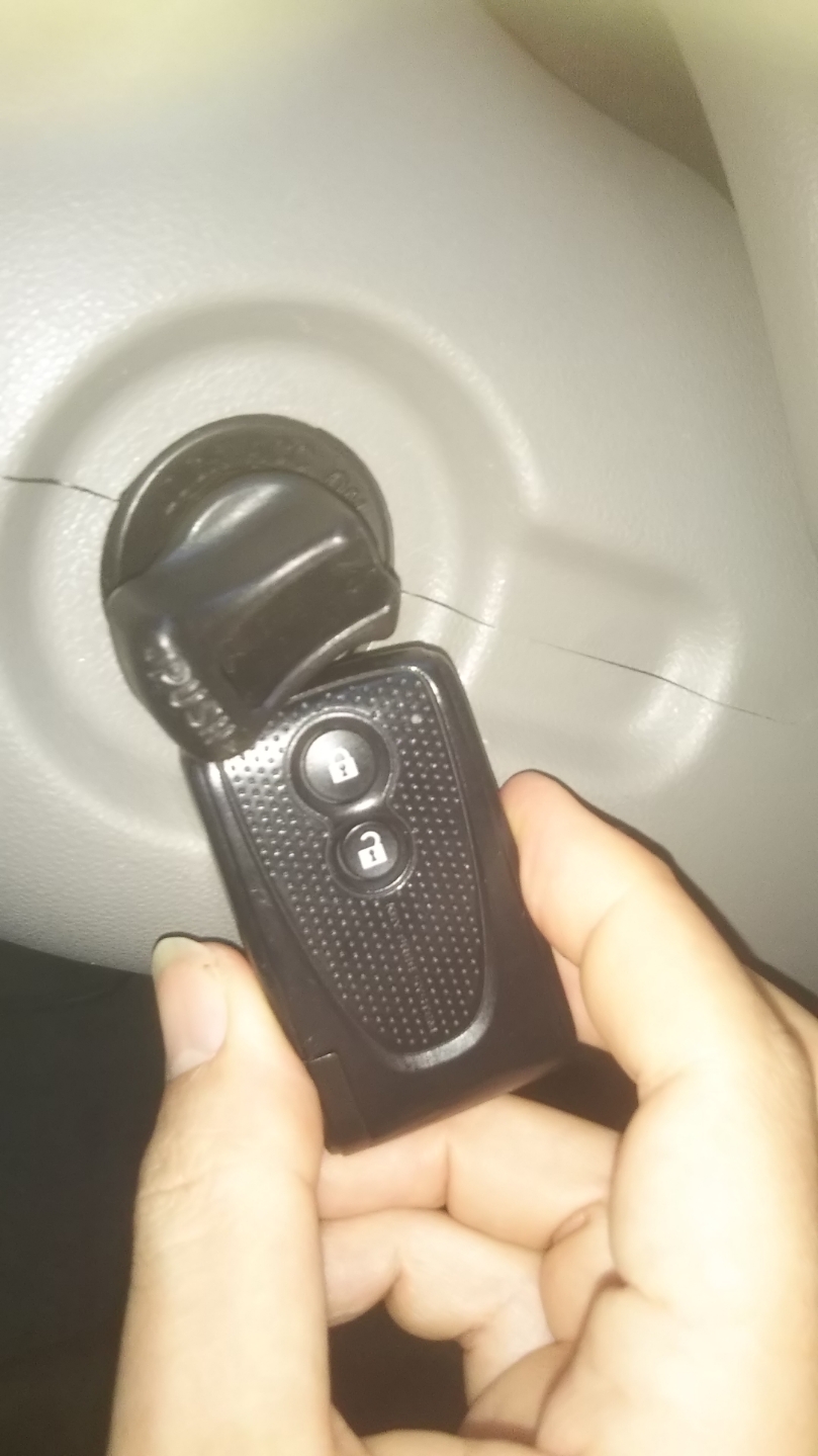(鍵を追加してもらいたい)との電話です。現場で確認してみるとツイストノブタイプの鍵です。このタイプの種類の鍵はスマートキーとイモビライザーキーの両方が車を購入時に付いてくる製品になっておりどちらともに使用可能な設定になっております。スマートキーは鍵をツイストノブに差し込まなくてノブを回せます(エンジンをかけられる)ので中古の場合これだけ持っている方々が多いです。お客さんがどちらを持っていてもスマートキー及びイモビライザーキーのどちらともにすぐに登録可能な状態でしたが今回は(料金を安くして使える鍵が欲しい)との話なのでイモビライザーキーを追加登録致しました。イグニッションONです