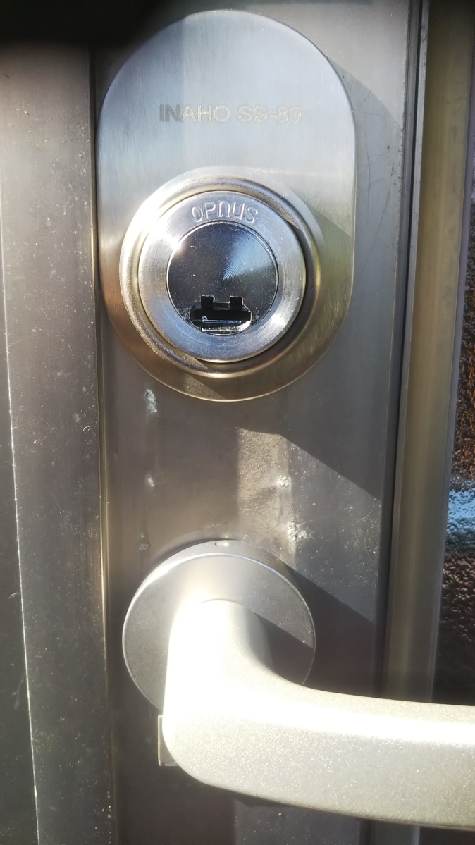 ドアに鍵が2つ付いていて(片側の鍵だけ不具合)があるとの電話です。結構こういった方々は多いです。同時に使用していますが同時に不具合が起こるということは希だと思います。なので片方だけが不具合が出てきても片方だけまだ使用できるので片方だけで使用するようにする方々も多いですがもう片方も時期に不具合がおこるのでその時に同時に修理及び交換というパターンの方も多いですが今回はどちらとも使用したいので片方に不具合がおきたらすぐトラブル解決したいという方です。お客さんは(両方ともに鍵を交換しなければならない)と思っていたらしく当方が(片方だけ修理することも可能ですよ)というと即決で依頼、不具合はすぐに解決、違和感なく開閉できるようになりました
