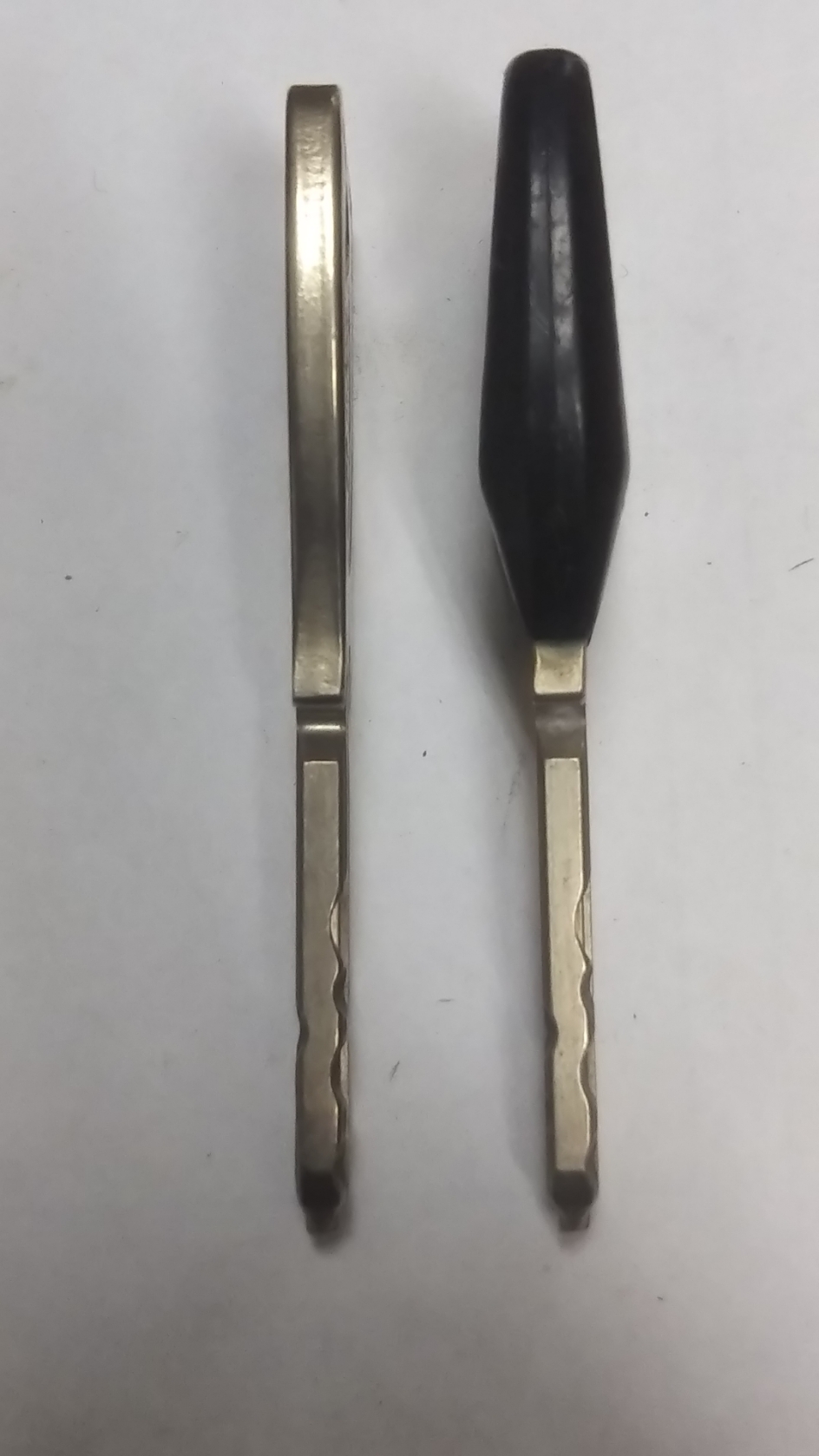 (合鍵を作製して欲しい)との来店です。最近普及しているプッシュスターター用のスマートキーに付属しているメカキーの作成依頼です。このメーカーの鍵持ち込みで持ってこられる方も多いですがデーター通り寸分の違いも無くスムーズに作成完了、何の問題もないと思っておりましたが一時して(合わない)との電話?不思議に思い現場に行って見て確認してみると確かにドアキーが回りません!(写真)鍵の溝の深さを確認してみると10μmレベルの違いです。通常はこの誤差範囲で回らないわけがないのですがなぜか回りません?色々と調査してみると回る鍵が完成。純正とブランクのデーター的に全く同じに見えるのですが何か構造的な違いがあるんですかね?このメーカーから出ているもう一つのブランクキーも全く同じ現象が・・・